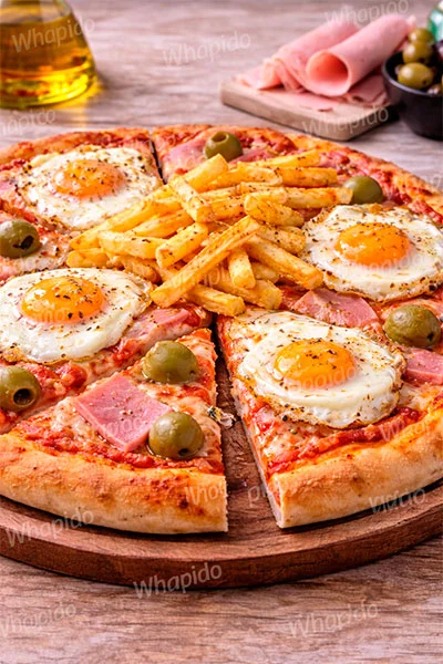 Muzzarella, panceta, huevo frito